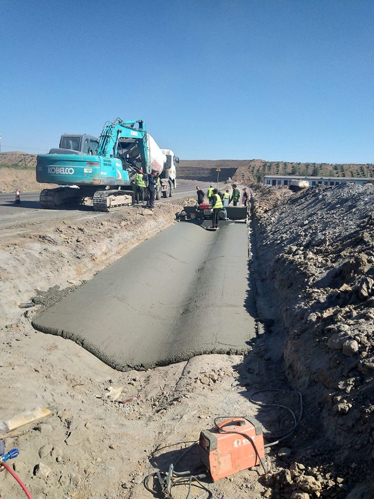 今天分享這臺自走式水渠機的案例有兩大特點。眾所周知在前些年的技術文章里我一直強調過自走式液壓水渠機不可以使用商混料。而今天這臺山西朔州的液壓水渠機恰恰是使用罐車商混料,而且做的很成功。近些年水溝現澆的工程中對混凝土的要求是越來越高了。就如此次朔州的這個現場,甲方明確要求必須使用標號C25的商混。